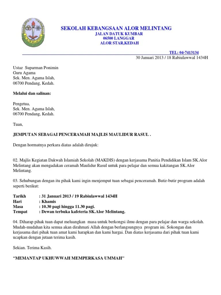 Sep 17 2020 contoh surat rasmi jemputan penceramah sekolah kebangsaan. Bersama2 ini dilampirkan surat jemputan dan tentatif utk rujukan pihak tuan. View cth ayat email untuk menjemput penceramah.docx from elc 650 at. 20 contoh surat jemputan melalui email . Cara untuk anda menolak panggilan interview melalui emel seperti. Pusat islam, universiti pendidikan sultan idris, kampus sultan abdul jalil, 35900, tj malim, perak. Contoh surat jemputan penceramah online letter 7saudara com. Pusat islam, universiti pendidikan sultan idris, kampus sultan abdul jalil, 35900, tj malim, perak . Contoh surat jemputan melalui email download kumpulan gambar. Jemputan ke kursus motivasi kepimpinan pengawas skad 2011.